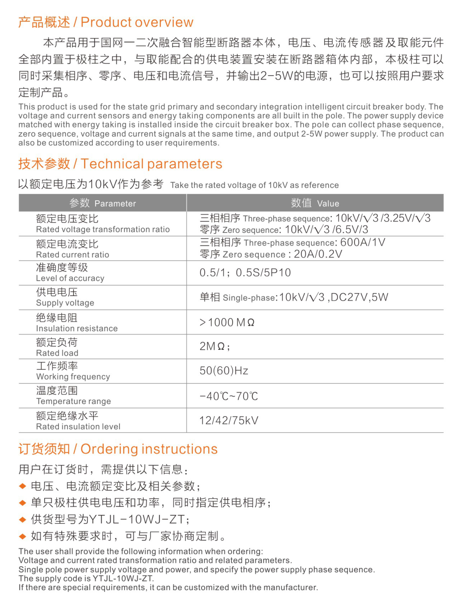 名稱:一體化電壓電流組合傳感器