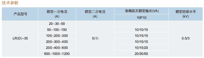 六、LW8-35六氟化硫斷路器用LR(D)-35 電流互感器主要技術參數: