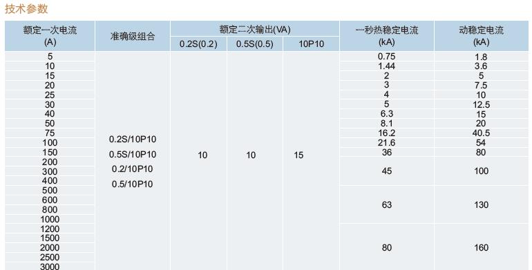 三、LZZBJ9-10A1G、LZZBJ9-10B1、LZZBJ9-10C1戶內(nèi)電流互感器 技術(shù)參數(shù)