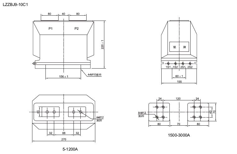 四、LZZBJ9-10A1G、LZZBJ9-10B1、LZZBJ9-10C1戶內(nèi)電流互感器 外形及安裝尺寸